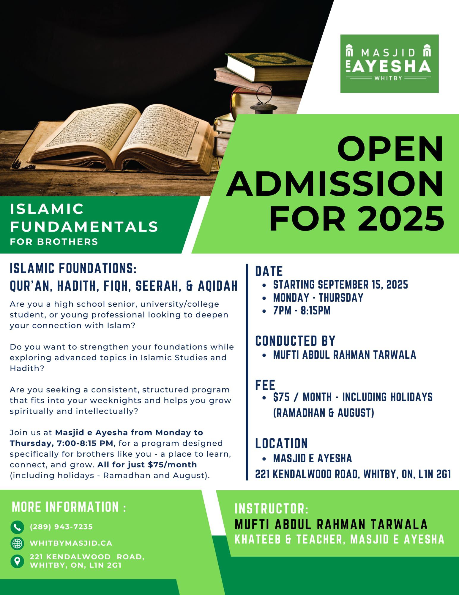 Welcome to Masjid-e-Ayesha, located at 221 Kendalwood Road in Whitby. For over 20 years, the Masjid team has served the Whitby community in several activities that promote Islamic values of submission to Allah, scholarship, and sports.